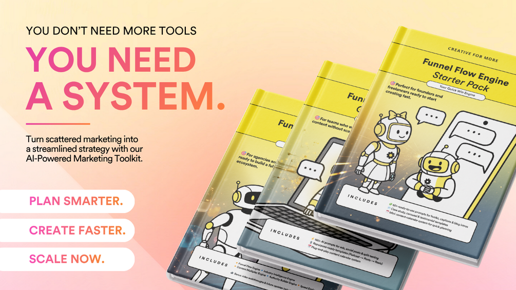 Inside the Funnel Flow Engine you’ll find proven templates, advanced AI prompts, campaign systems, and strategic frameworks used by a digital agency trusted across Singapore, Japan, and the US. Each tier gives you a practical, no-fluff toolkit engineered to take you from idea → execution → impact — without the overwhelm.✨